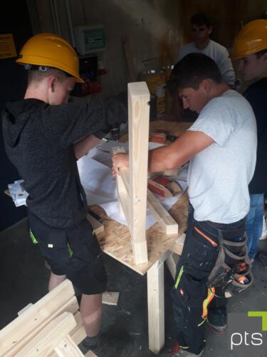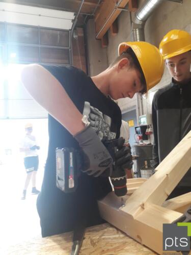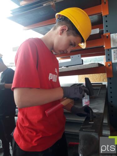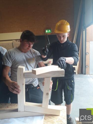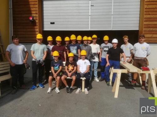 An vier Stationen durften die Schülerinnen und Schüler selbst Gartenbankerl (oder Klassenbankerl…) bauen, Schalungselemente stellen, Bleche biegen und den Werkstoff Metall näher kennen lernen.